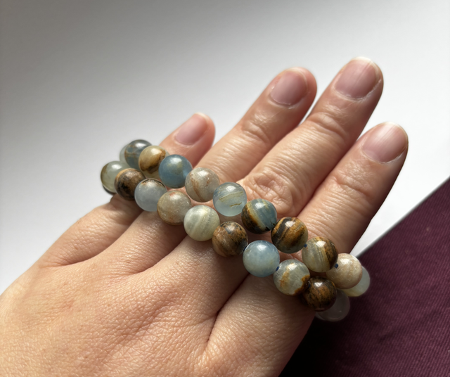 Natural colour Blue Calcite beads (9mm), this bracelet brings gentle, peaceful energy to support emotional healing and clear communication.
