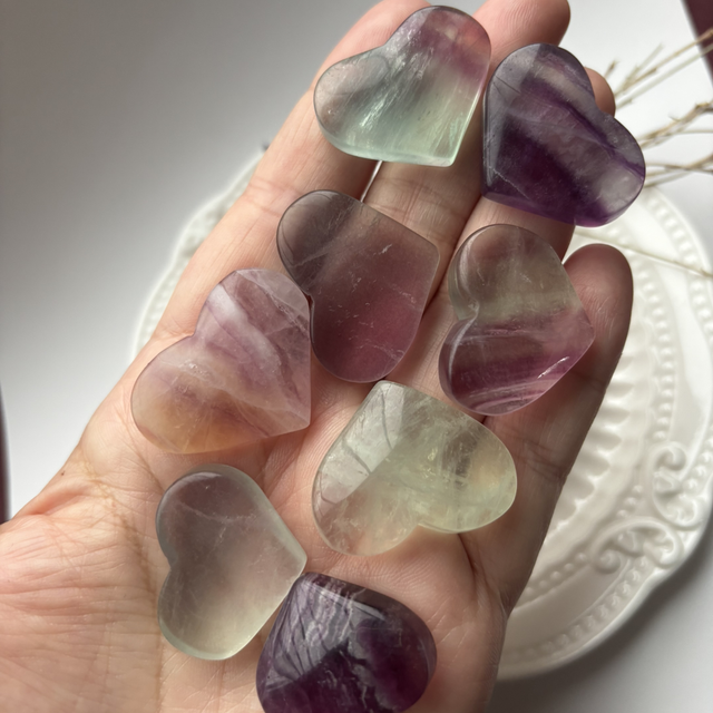 High-quality, beautiful fluorite heart — a meaningful gift for your loved one. Size approx: 30-35 mm width. item send out by random colour.