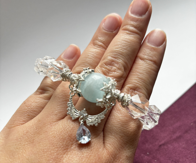 Made by Wind Series: 11mm Clear Quartz Diamond Beads × 15mm Aquamarine Bracelet