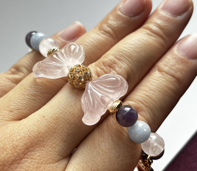 Made by Wind Series: Crystal Butterfly Bracelet : Rose Quartz x Amethyst x Moonstone x Angeline