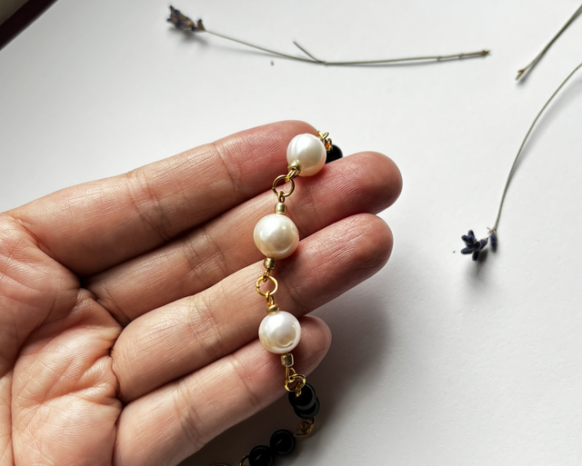 This unique bracelet pairs the timeless beauty of luminous freshwater pearls with the grounding energy of deep red garnet, finished with golden details for a touch of sophistication.
